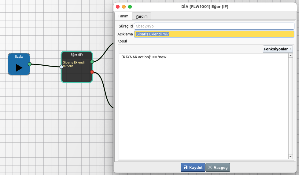 Örnek bir eğer fonksiyonunda action alanının nasıl kullanıldığı aşağıdaki gösterilmiştir: