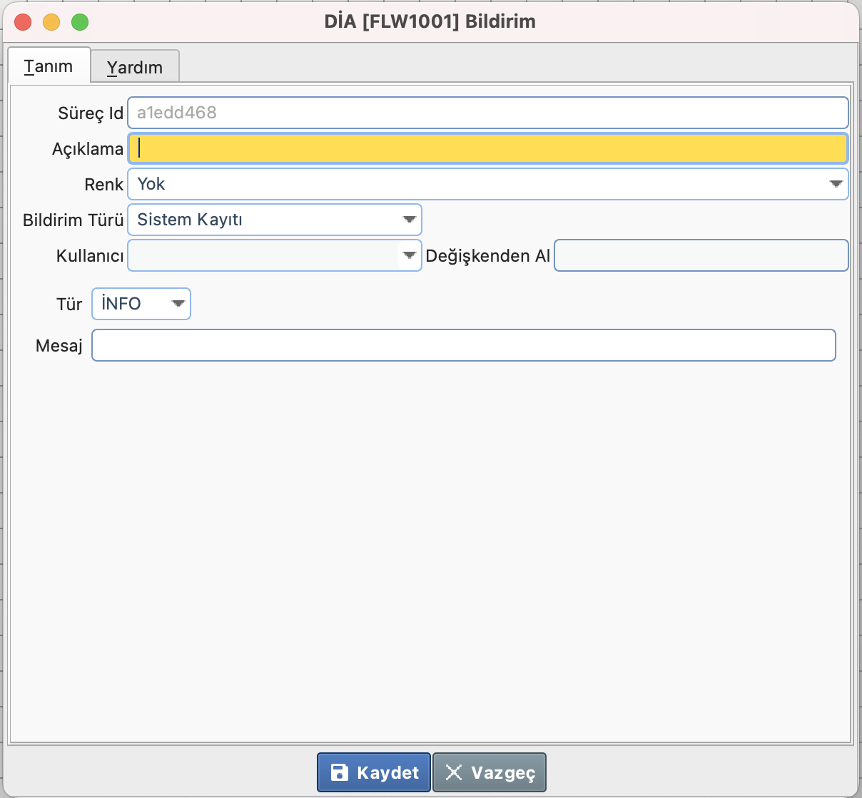 - Kullanıcı Mesajı: Mesajlar ekranına (sis4600) kullanıcıya iletilmek üzere mesaj ekler. Mesajlar sadece DİA içerisinden görülebilir.
