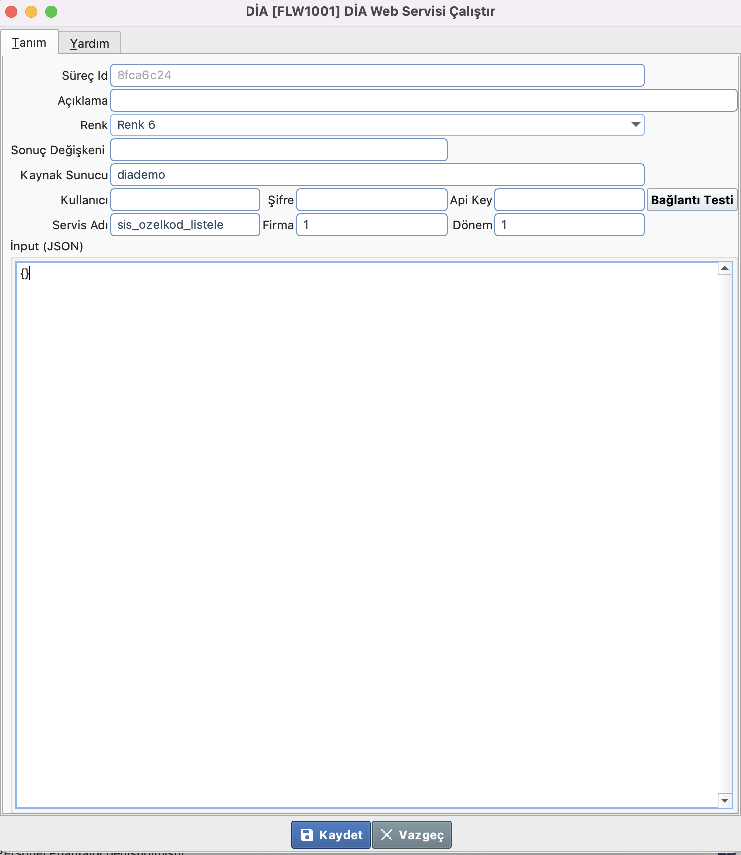 - Firma: Servisin çağrılacağı firma kodu. Sonuç değişkeni kullanılabilir.