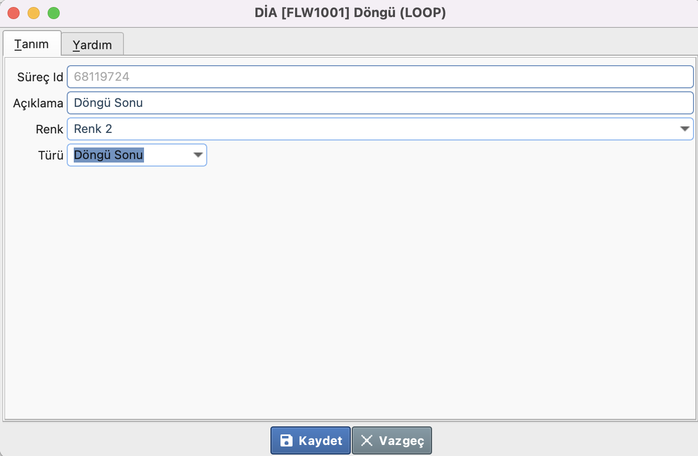 - Döngü Başı: Döngünün başladığı noktayı belirtiriz. Döngü bitinceye kadar aradaki süreçler burada tanımlanan listeye göre işletilir.