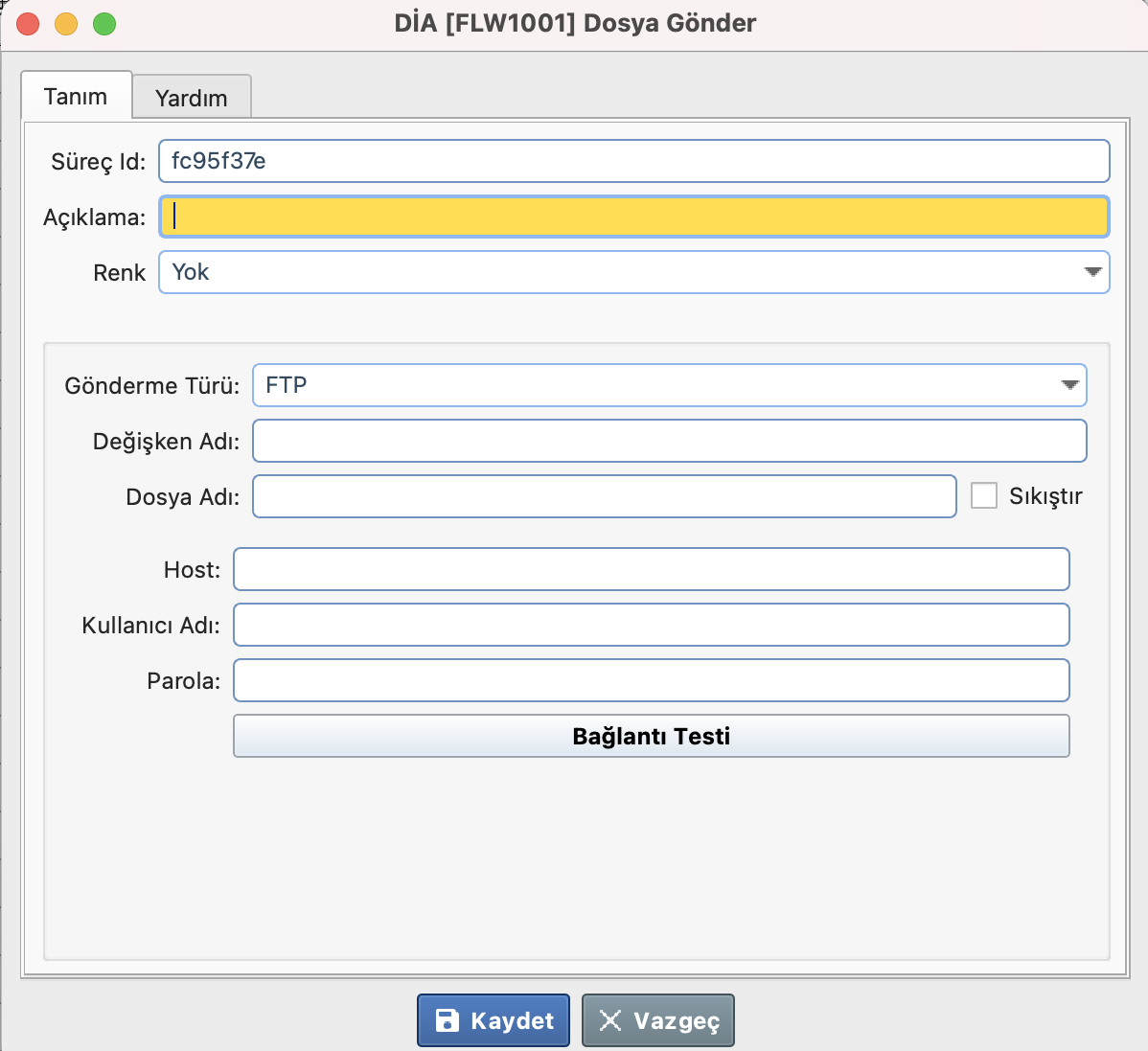 Host, Kullanıcı Adı ve Parola bilgileri ile FTP sunucularına bağlantı sağlamaktadır. Sunucunun FTP bağlantılarında kayıt için izin vermiş olduğu klasör içerisine dosyanın gönderimi sağlanmaktadır.