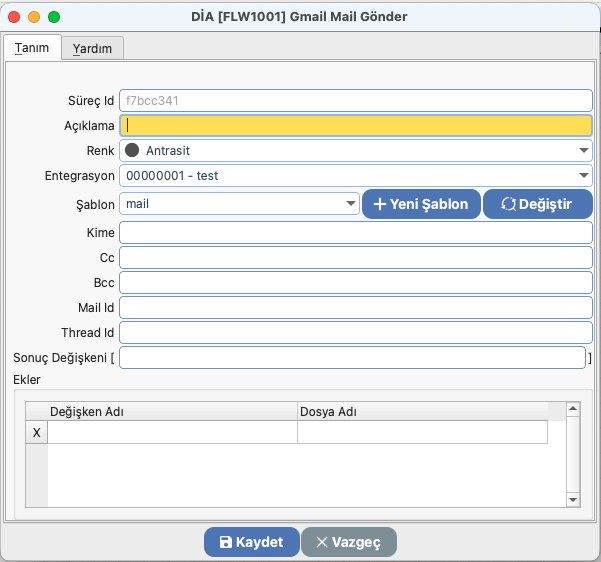 - Değişken Adı: Sonuç değişkeni yazılır. Örneğin hazırlanan raporun sonucu gönderilebilir.