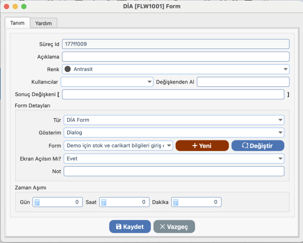 - Ekran Açılsın Mı?: Yönlendirilen formun kullanıcı ekranında hemen açılıp açılmayacağı belirlenir.