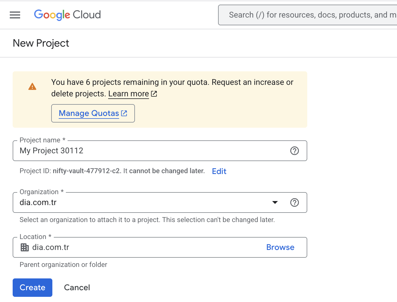 Adım 1: Google Cloud Console bağlantısına tıklayarak proje oluşturma sayfasına gidiniz.