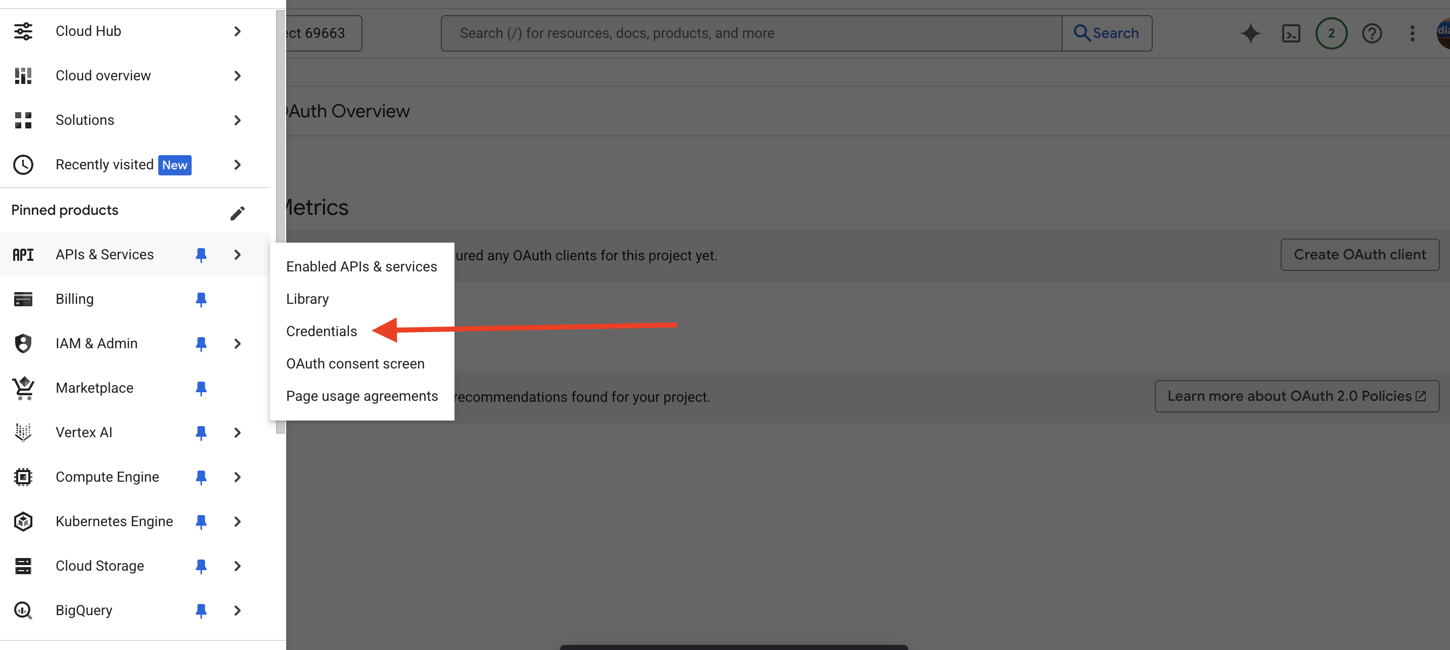 Adım 1: Sol üstteki ☰ (Hamburger) menüye tıklayın ve APIs & Services → Credentials menüsüne gidiniz.