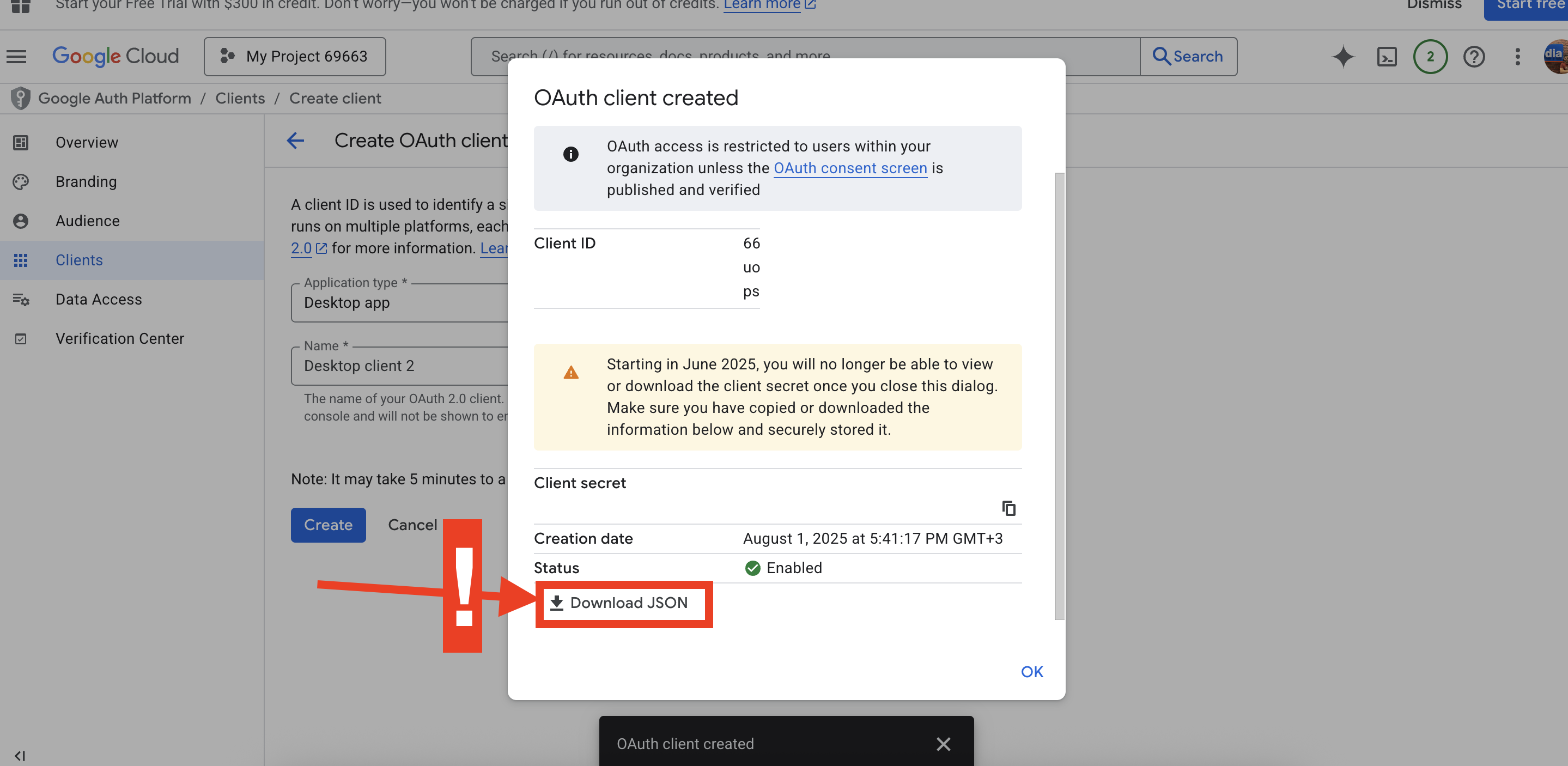 OAuth Client ID Oluşturma