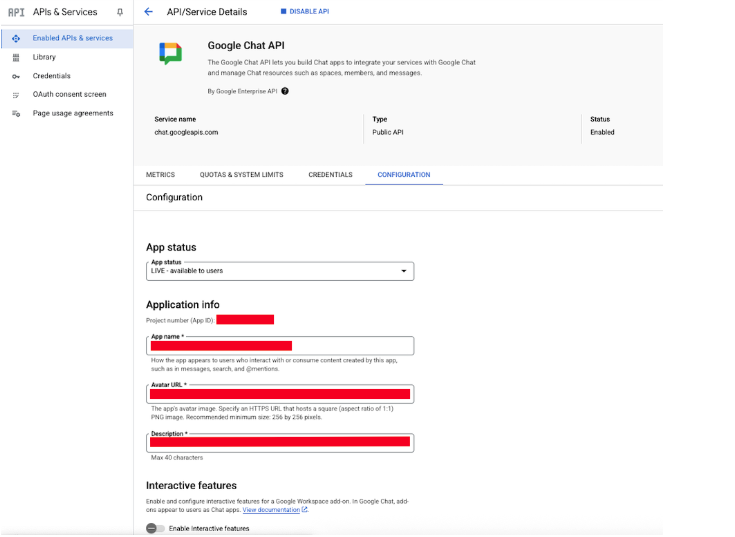 3. Google Chat API Konfigürasyon