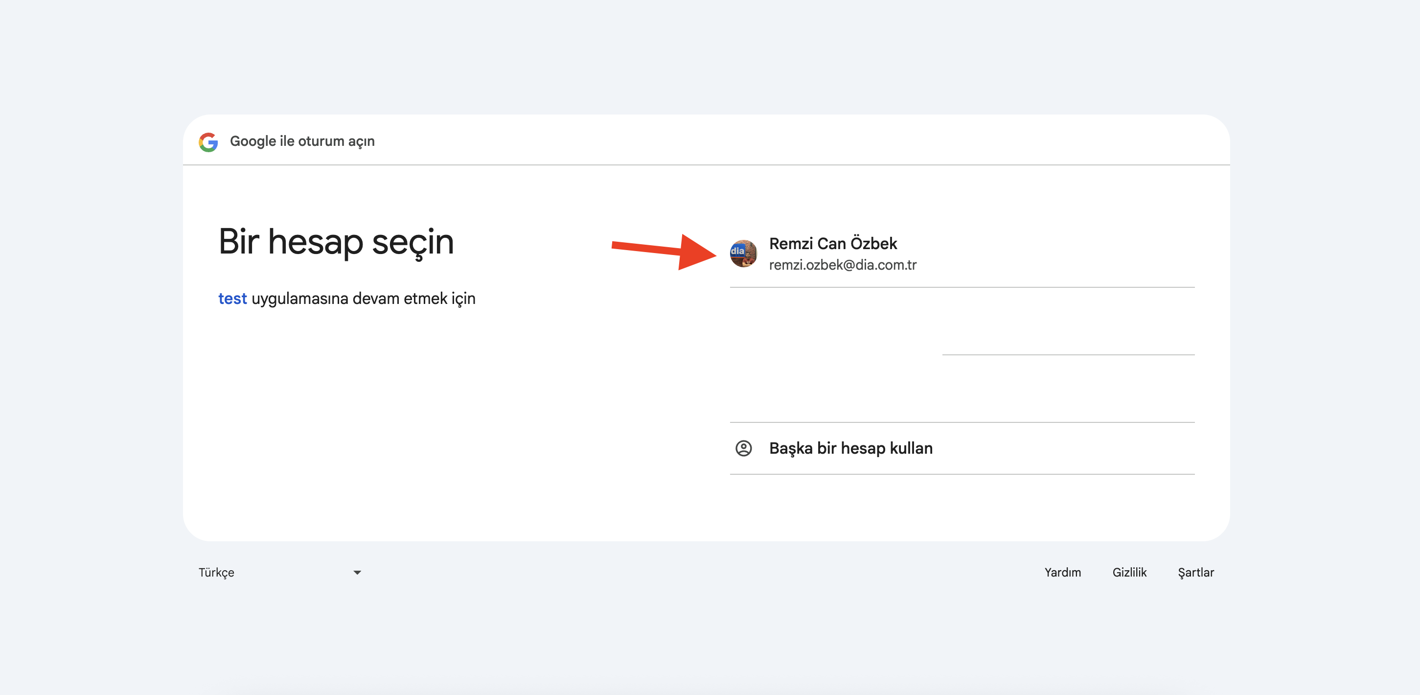 Adım 2: Açılan tarayıcı penceresinden yetkilendirilmek istenen mail hesabını seçiniz. Seçilen yetkilere bağlı olarak istenen yetkilere izin verin.