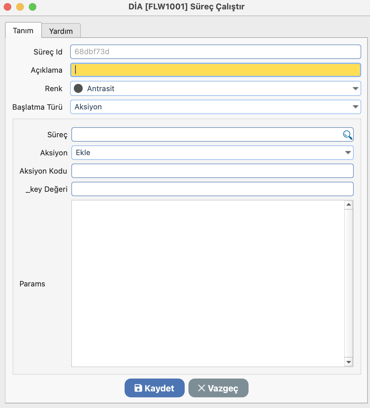 - Süreç: Çalıştırılmak istenen süreç seçilmelidir.
