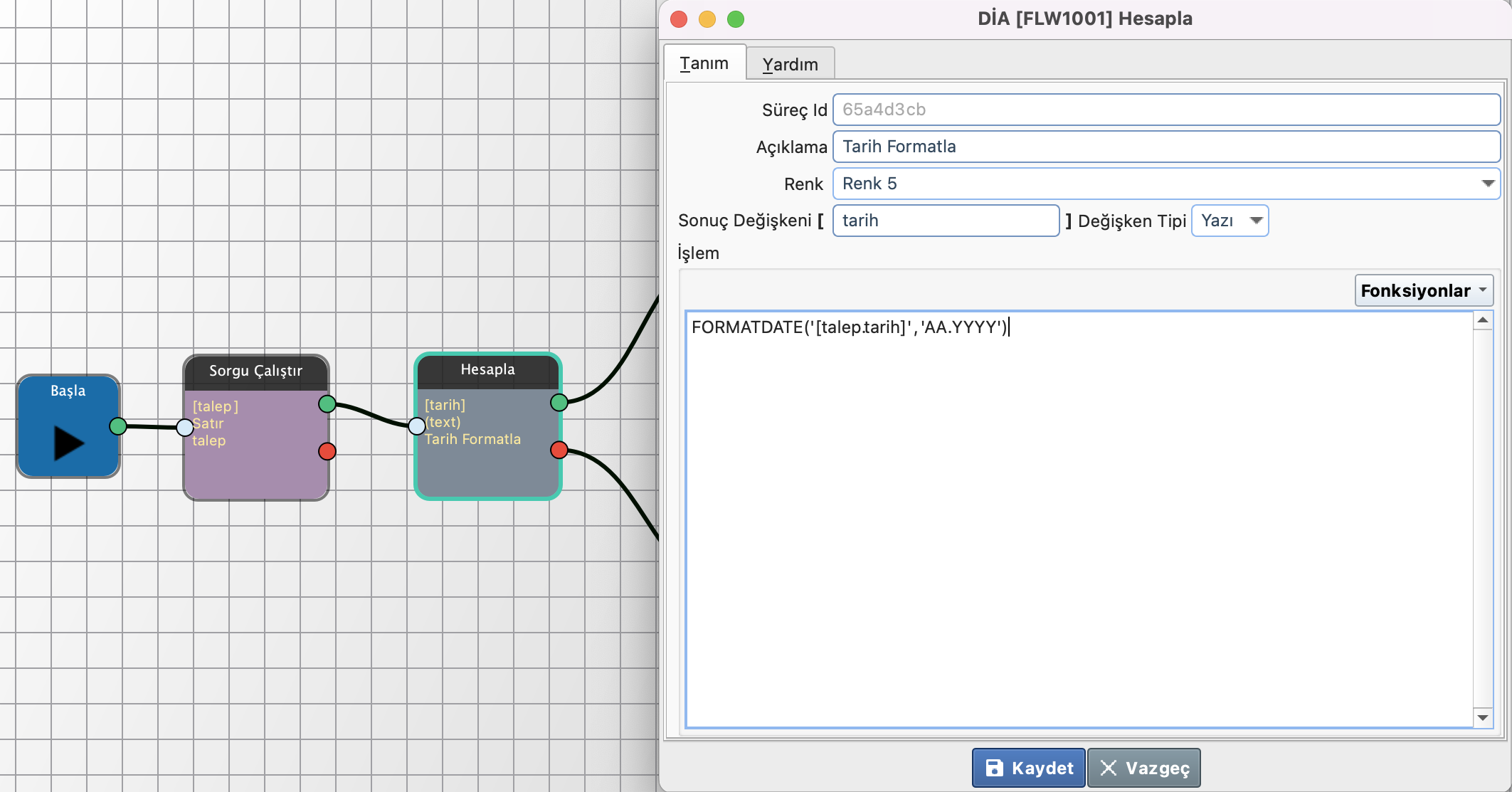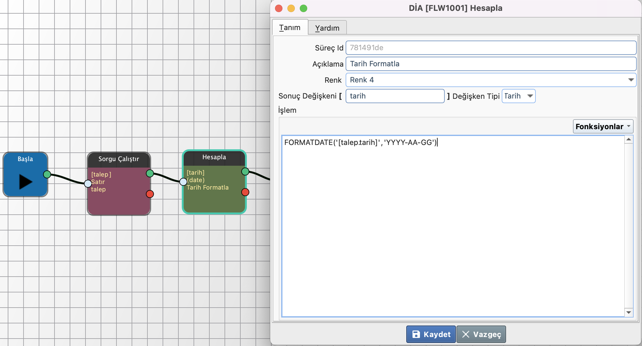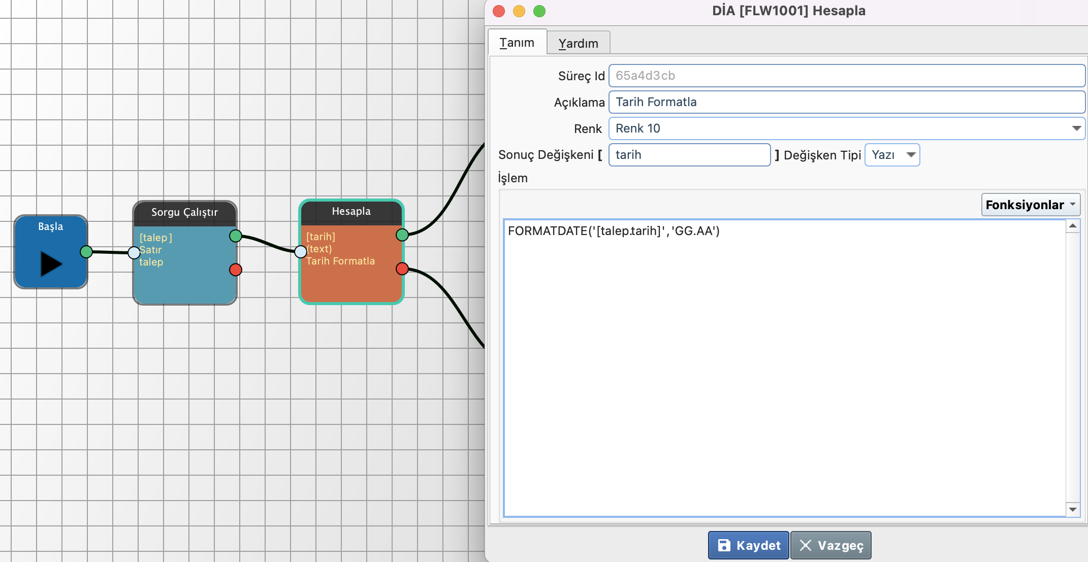 - FORMATDATE(tarih, format): Tarihi formatlayarak text çıktı verir.