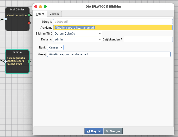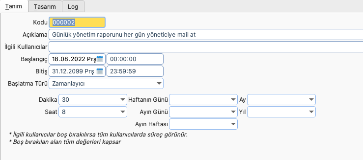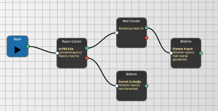 Örnek Senaryo: Günlük yönetim raporu o günün parametrelerine göre her gün hazırlayıp yöneticinin mail adresine iletilmesi istenmektedir.