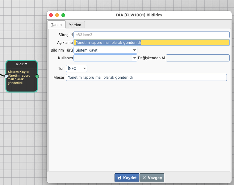 6. Adım: İşlemin başarıyla tamamlandığına dair sistem kaydı eklenir.