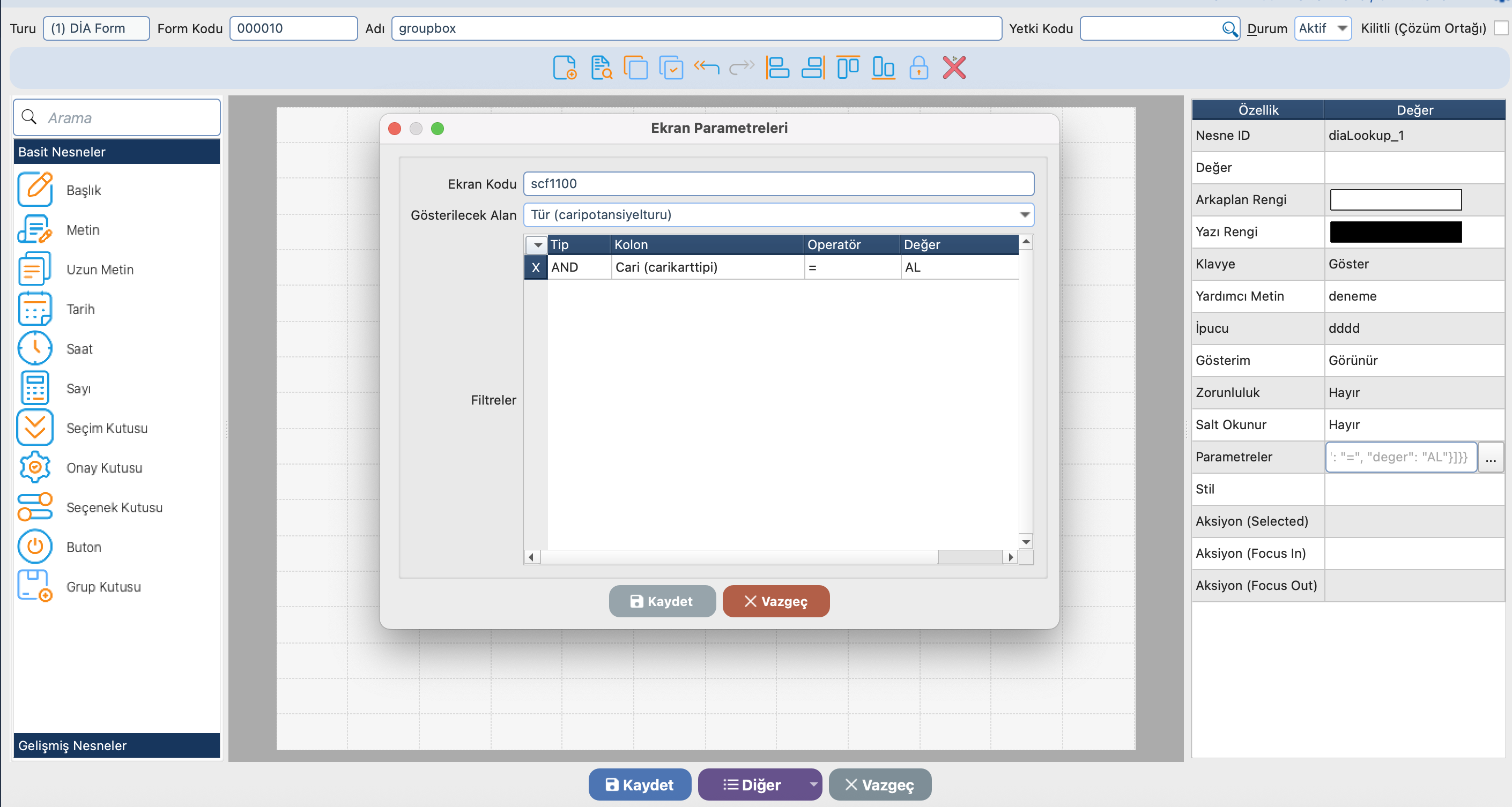 🆔 Nesne ID diaLookup_1 Not alanı Nesneye atanacak benzersiz kimliktir. Süreç tasarımında ve kod tarafında bu ID üzerinden erişim sağlanır.
