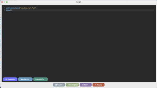 | Süreçte değer boş geliyor | setFormVariable tetiklenmiyor | Alan olaylarını ve tetik zamanını kontrol edin |