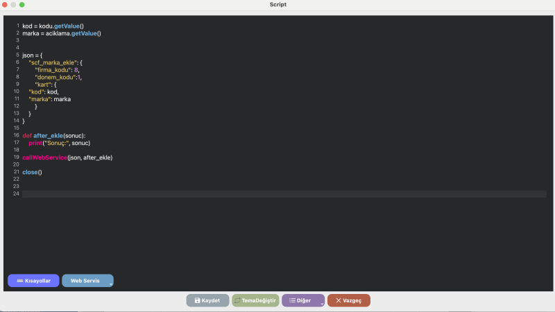 📜 Script Yöneticisi ve Web Servis Adımı
