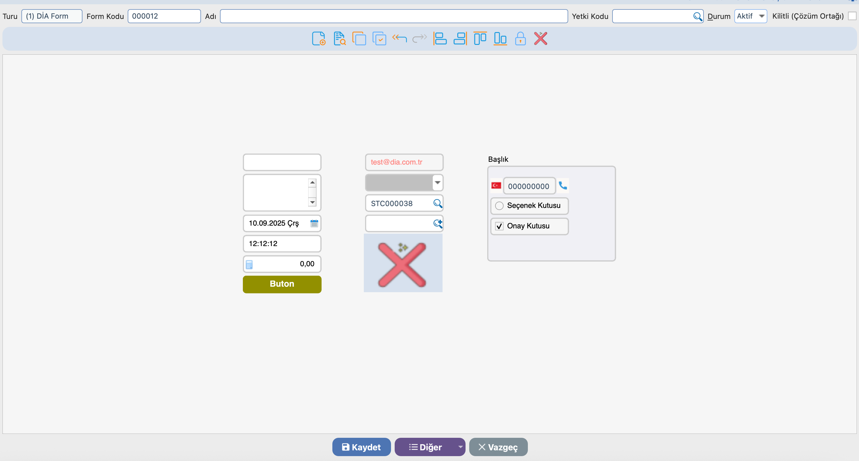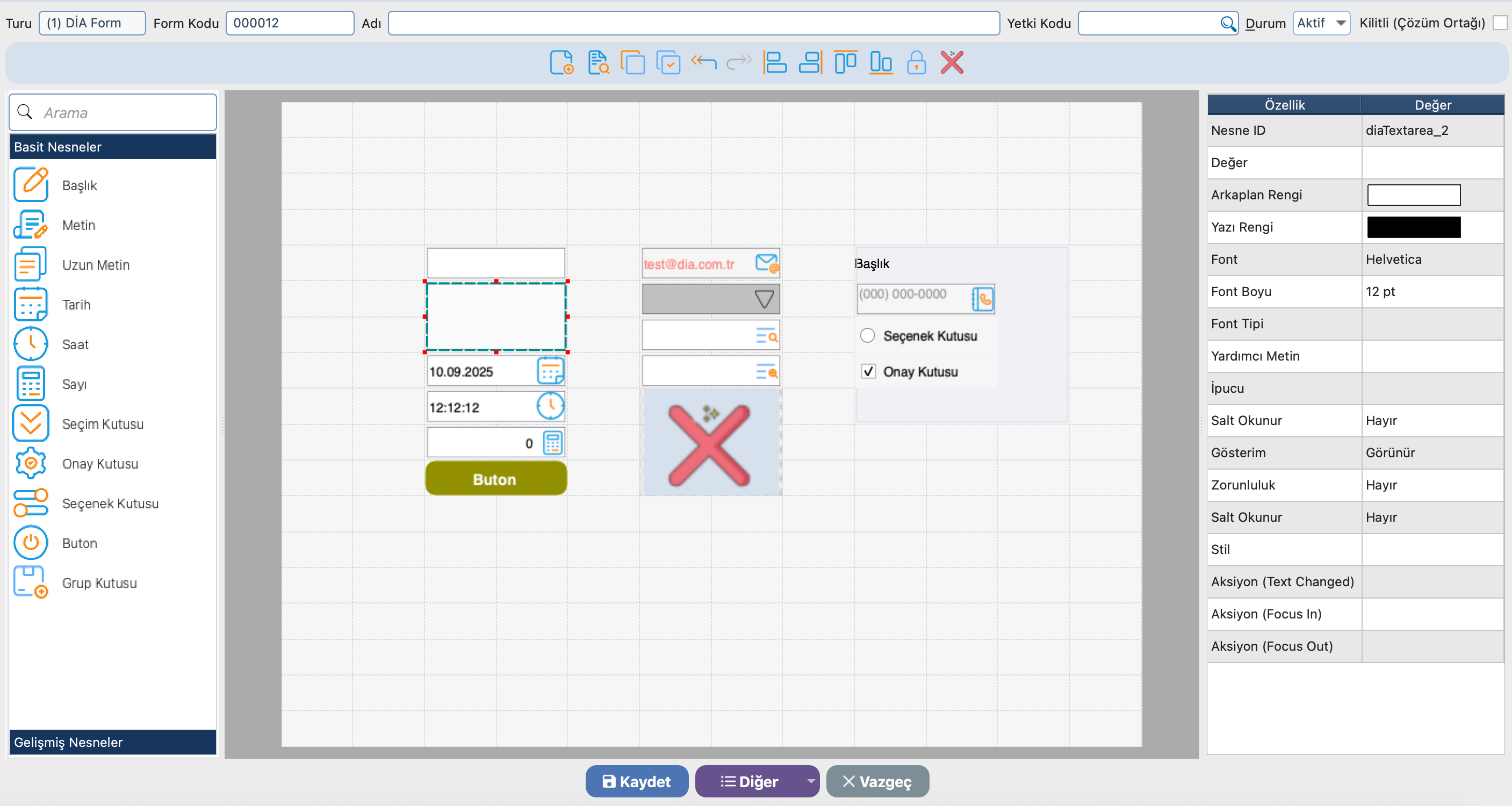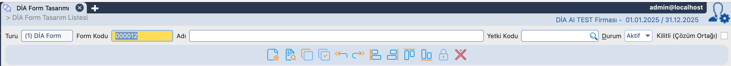 DİA’da mevcut ekranları özelleştirebilir, yeni tasarım ekranları oluşturabilir veya ihtiyacınıza göre veri giriş ekranlarını tasarlamanız için genel bilgilerin tanımlandığı kısımdır.